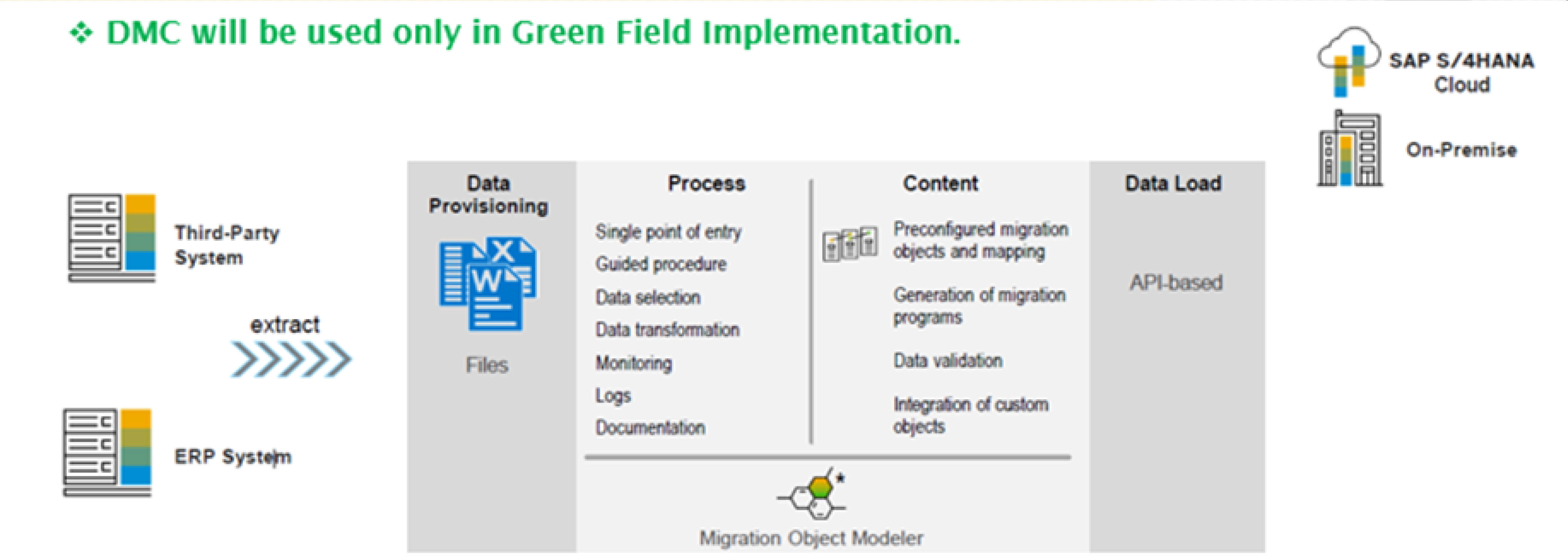 The SAP S/4HANA Data Migration Cockpit (DMC) is a data migration tool provided by SAP to streamline data migration from legacy systems to SAP S/4HANA. With its user-friendly graphical interface, the DMC allows easy definition, execution, and monitoring of data migration activities. Leveraging SAP's preset migration objects, this tool facilitates data mapping and migration. It offers features including data mapping, field transformation, data validation, and error handling. The DMC aims to reduce manual effort, ensure data integrity, and minimize risks associated with data migration projects, providing a seamless process post-S/4HANA installation.