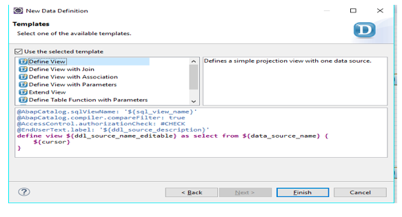 Click on next. Here it will ask to choose one template for CDS view. There are 5 options available, I have chosen the 1st option.