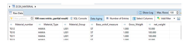 Below example is a display of material information from MARA table. Save and activate view.