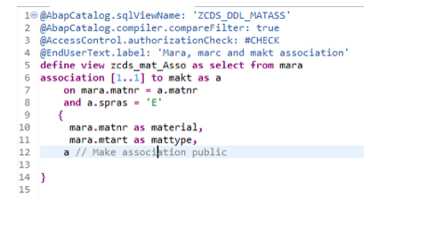 To understand how the association works, have a look in below CDS view where a CDS view with the association on table MARA, MAKT is created.