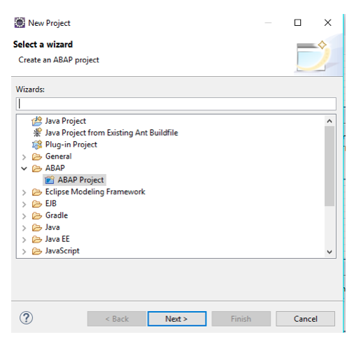 Click on next. It will ask for the project name. Enter the project name and finish this process. Choose ABAP perspective. The project will be available with folder Local objects($tmp).