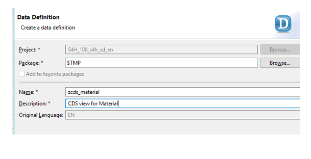 Click on next. Give a name of CDS view.