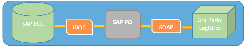 SAP Process Orchestration (PO) is used as a Middleware Engine to communicate between SAP system and 3PL WMS system. The heart of PO is Integration Engine that is used for integrating different technologies using Standard Messaging techniques, e.g. XML. SAP system sends information via IDOC. SAP PO converts IDOC to XML to send information to 3PL WMS and vice versa.