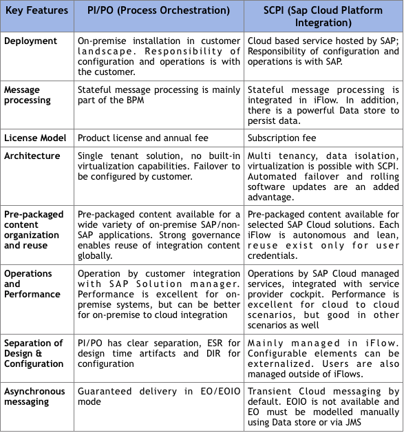 The architecture and functioning of SCPI and PI/PO are quite similar, to the extent that the integration flow designed in one system can be deployed in the other as well, thereby allowing for a smooth transition between the two systems. So, the main factors to consider while choosing the middleware are as follows: